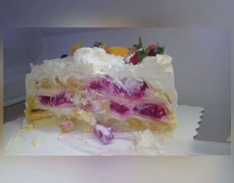 被大家推荐好多次了 趁着这次老爸生日 刚好在火车站 想把最好的蛋糕送给最爱的老爸 因为赶时间取了一个现做的千层蛋糕 小小的八寸满满的重量级 蛋糕的名字是满满的爱 打开蛋糕放心陷超足 不是罐头水果 而是新鲜的一坨又一坨 水果份量真的很足 慕斯蛋糕可以推荐大家订购 不过需要提前一天哦 芝士奶酪半烤很香个人很喜欢吃 偏向甜食爱好者的福利 滋味蛋糕很赞\(≧▽≦)/