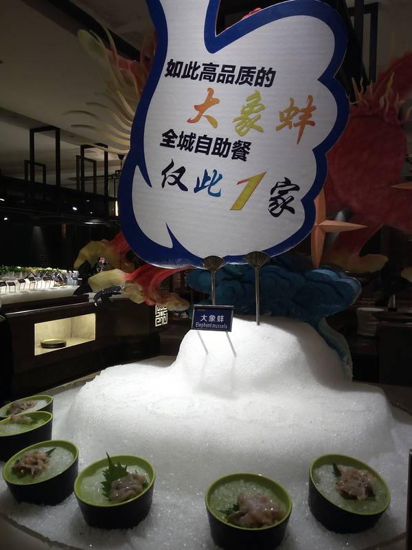 福州最好的海鲜自助餐之一,象蚌、三文鱼、鹅肝、牡丹虾、鲍鱼、松茸,冰淇淋有两种,一种是哈根达斯...
