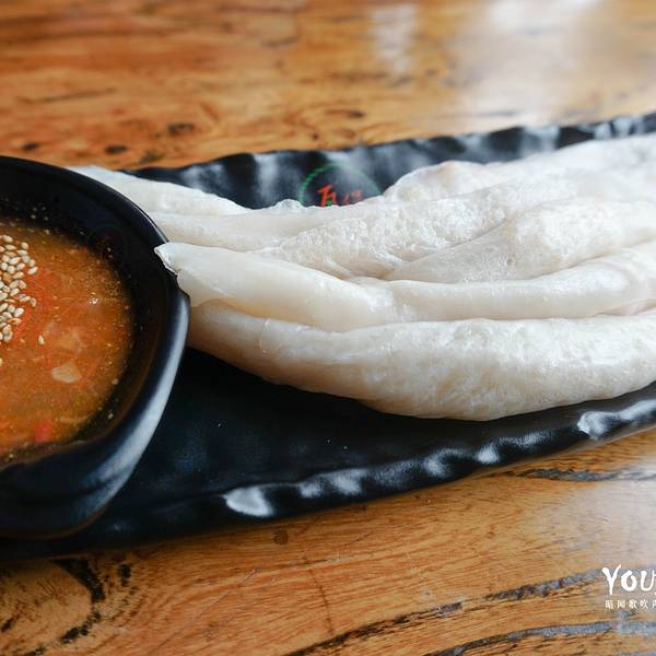 煎饼 特别推荐子长煎饼!!!!和常见的煎饼不一样,这里是条状的,点了一份土豆丝馅,¥3/份,这份量即使在非景区也是超级良心的有木有。蘸着特制的酱汁咬一口,幸福指数biubiu地涨。