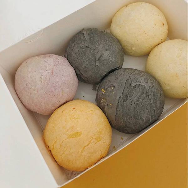 早有耳闻这家球酥用料足,颜值高,口味多,不踩雷而出名♥️终于吃到了开心了两天~哈哈哈(我也实在是太容易满足了) (主打无添加天然的食材,不会甜腻,家里老人啊孩子啊都可以放心吃;当天烤制,保质期只有1-3天左右)❗️ 〰️ 🔴红豆乳酪球酥🔴 是我的心头爱‼️早晨一口气吃掉两只~奶酪丝绒浓郁加上软糯的红豆,好吃到停不下来,完美 〰️ 🟣芋泥流沙球酥🟣 (店里的新品)淡雅的紫色好看到不忍心下口,紫薯的味道不重,芋泥香甜可口不会腻 〰️ 🟡榴莲乳酪球酥🟡 喜欢榴莲的姐妹看过来,一定要去尝尝!我实在没有这个口福…老公直夸贼好吃,味道浓郁,果肉用料很足,吃完整个人很满足❗️ 〰️ 🔵麻薯肉松蛋黄球酥🔵 不太起眼的外表下面一层层的馅料很有内涵!外皮儿酥脆,肉松➕蛋黄组合在一起口感一级棒! 〰️ 🟢来青岛旅游选伴手礼送给小伙伴们还是很不错的选择喔~