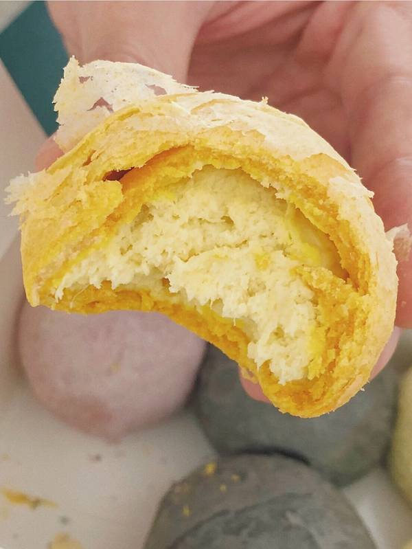 ...球酥打打牙祭🍬, 中间是蛋黄和红豆馅的, 吃起来比较香,但是不太甜, 下午茶或早餐很棒的选择