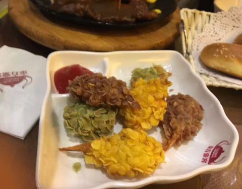 点了两份澳洲精选牛排套餐,7分熟。上的粥是凉的。说给换但是餐都用完了还没给上来。牛排第一次直接煎炸至金黄后的地方发黑,咬不动,所以换了第二份,比第一次稍好点,但依旧咬不动。还有很多所谓的筋。牛排里的配菜西兰花吃到嘴里好像坏了的。讲真,这里的牛排一次不如一次,水果沙拉也是一次不如一次,柚子根本咬不动。不会再来。