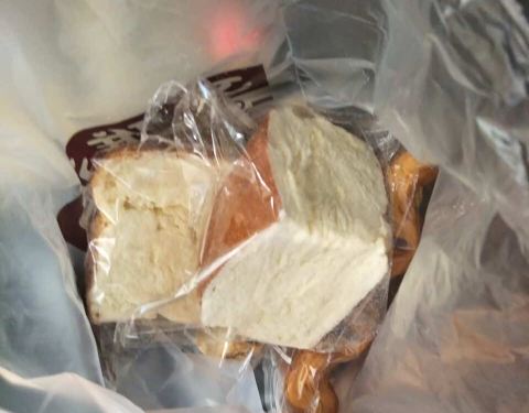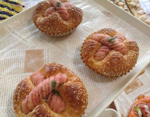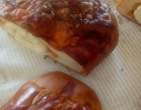 好好吃的面包哦,肉香酥软,还有菠萝,蓝莓水果味的清香,