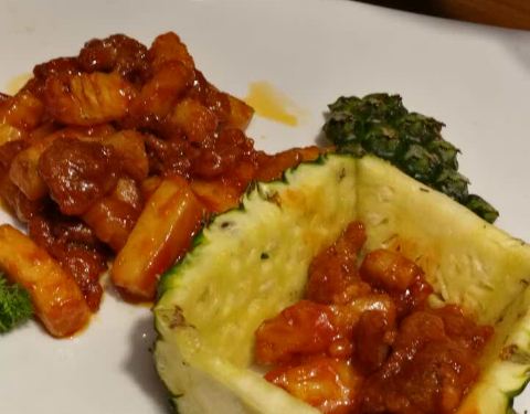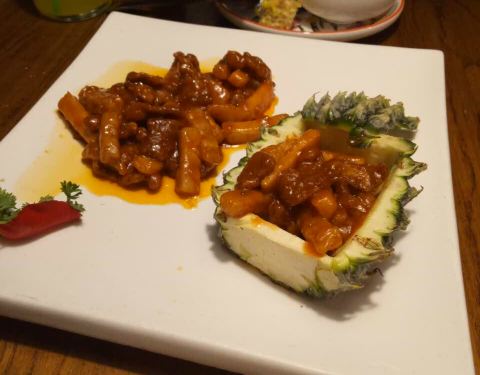 老豆腐很入味,菠萝牛柳酸甜可口,温州拌面很实惠