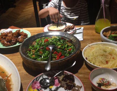 朋友介绍的说新白鹿的菜便宜又好吃,刚好今天去中大就吃吃看,还好去的早了点不用排队,环境蛮好的,的确便宜量也蛮多的,就是稍微偏咸了一点,两大两小去吃的点了六个菜根本吃不完