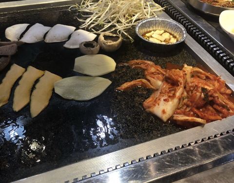 烤盘上会放很多泡菜,酸爽开胃,味道正宗。 超满足的一顿,价格也实惠,会再来