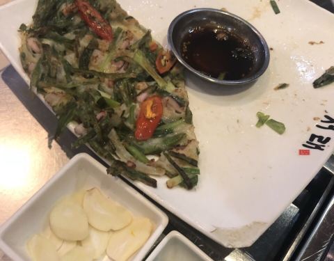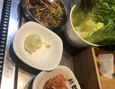 一直很喜欢喜来稀肉,这家算总店,一定要来尝试。和别家不同,这家是烤盘形式,有服务员来帮忙烤。 东西超丰盛,还没上菜,就送了超多小菜,小菜都可以吃半饱,色拉、泡菜和土豆泥都很好吃。 海鲜葱饼,真的和在韩国吃到的一样,葱很多很粗,海鲜也多,真的很好吃。 烤盘上会放很多泡菜,酸爽开胃,味道正宗。 点了烤五花肉和猪颈肉,肉店员帮烤的,不蘸酱都很香,原汁原味的,推荐五花肉。 烤盘上还有很多蔬菜,店家很用心,还配了猪皮,大肠和香肠,正好都是没点的小菜,尝了下也很好吃,猪皮烤熟会弹起,烤肠也很香。 超满足的一顿,价格也实惠,会再来。