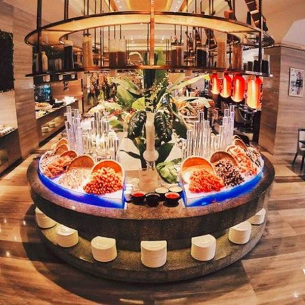 种类繁多,滋味鲜美的海鲜,应季新鲜瓜果蔬菜和各种扒类、寿司,新鲜烤好的火鸡散发着肉类独有的香味