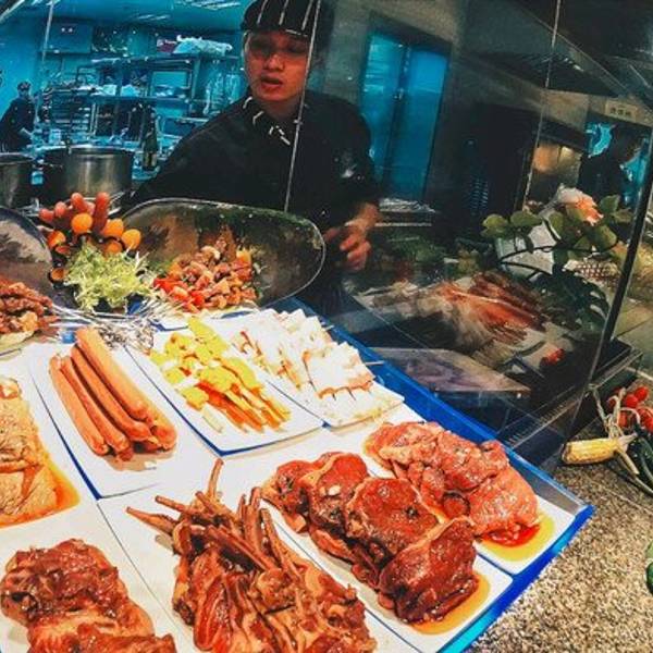 - 种类繁多,滋味鲜美的海鲜,应季新鲜瓜果蔬菜和各种扒类、寿司,新鲜烤好的火鸡散发着肉类独有的香味