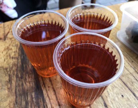 任何时候路过都是大排长龙的,小小的门店就那么几个位置总是做的慢慢的。店里的糯米饭总是用木桶蒸着,香肠也一起。旁边的小炉子热着煲好的扣肉。除了软糯的糯米饭外,大家最惦记的还是那一块扣肉呢~一小碗糯米饭,一根腊肠,一块扣肉,这是标配,饭量大的大概要来好几碗吧。扣肉煮得软烂入味,糯米饭一定要拌扣肉的酱汁来吃!店里还配有消食解腻的山楂叶茶,吃完来一杯不用担心胃不消化