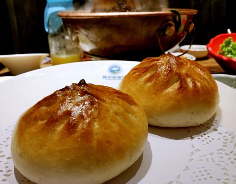吹爆他家的烤包子,太好吃了。你能想象一个从来不吃羊肉包子的人在一瞬间就感觉像打开了新世界的大门嘛。不过包子太实在,建议女生们分半个吃,这样才有肚子吃嫩嫩的涮羊肉,香香的羊肉串。。。。。