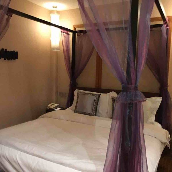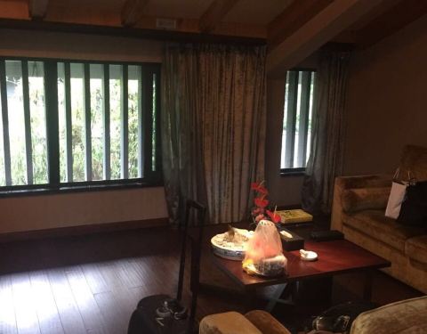 本来订的园景套房正在装修 于是升级成了更大的套房 房间大 床睡着很舒服 周边环境也不错 离前山和镇上都近 吃住方便 就是配套设施还需要加强 棋牌室在升级 足浴台球厅都取消了 温泉也就是个游泳池