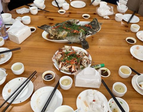 后沿省道336至深澳镇深澳湾,再坐快艇去鱼排吃海鲜,点了老板推荐的海包公、鱿鱼、虾、蟹、生蚝、...