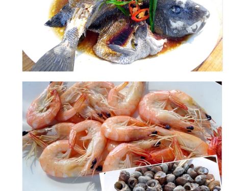 能够在海中央吃饭,可以说是难得中的难得!打电话联系店家后,到定位的一个码头,店家的快艇就开过来接送。海风是真的很舒服!很不错的体验 【口味】食材相当的新鲜,想吃什么直接从海里捞上来,现捞现煮,手艺也很好,煮得口味很棒! 【环境】在海中央,吹着海风,望着海景,吹着海鲜!从未有过的享受。360度无死角的海景真的特别赞。 【服务】老板很是热情,找不到码头位置会细心跟你说,快艇是免费接送的喔!吃完饭老板还给我们打了个折hhh 下面放图,各种新鲜食材。