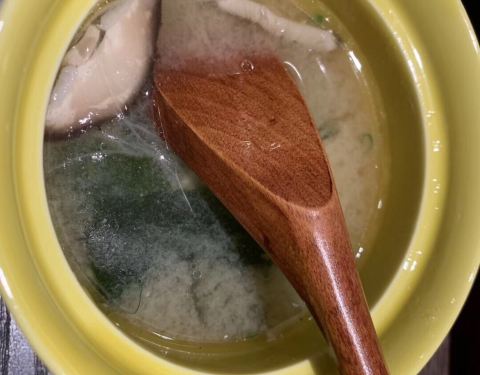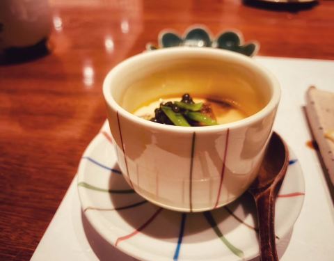 赤海胆寿司,海胆堆满了,鲜甜细嫩,和一点点酱油配合的正好。 白身鱼蔬菜增味汤,拿鲷鱼头煮的,入口很腥,吃了点鱼肉有十分鲜甜,汤中的蔬菜很新鲜。 特制秋葵,切的细细的秋葵和山药,黏黏的口感,配合着木鱼...