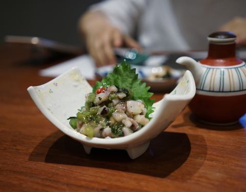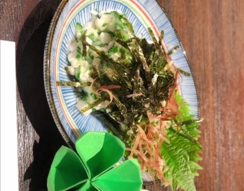 特制秋葵,切的细细的秋葵和山药,黏黏的口感,配合着木鱼花蘸酱油还不错