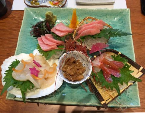 赤海胆寿司,海胆堆满了,鲜甜细嫩,和一点点酱油配合的正好。 白身鱼蔬菜增味汤,拿鲷鱼头煮的,入口很腥,吃了点鱼肉有十分鲜甜,汤中的蔬菜很新鲜。 特制秋葵,切的细细的秋葵和山药,黏黏的口感,配合着木鱼...赤海胆寿司,海胆堆满了,鲜甜细嫩,和一点点酱油配合的正好。 白身鱼蔬菜增味汤,拿鲷鱼头煮的,入口很腥,吃了点鱼肉有十分鲜甜,汤中的蔬菜很新鲜。 特制秋葵,切的细细的秋葵和山药,黏黏的口感,配合着木鱼花蘸酱油还不错。 和风蔬菜沙拉,蔬菜很新鲜,芝麻酱很浓郁。
