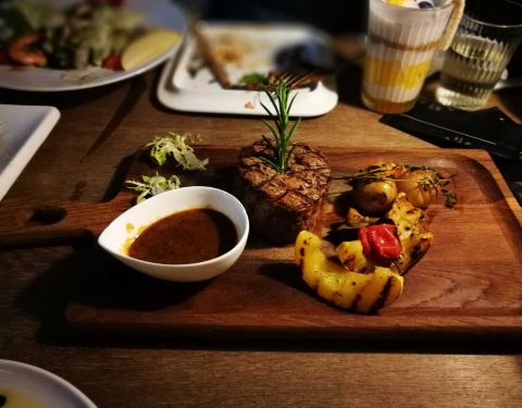 废弃的锅炉房改造成工业风的餐厅,顺着不起眼的大铁门往里走有很大的停车场,顺着指示牌寻到正门,门把手是扳子做的酷,一进门是衣服店,再往前就是餐厅,棚顶有一架木质大飞机,右手边是森林风格的包间,还有榻榻米,晚上18:30还有驻唱,听着歌吃着饭很惬意。有点乌托邦的感觉,适合情侣约会。菜品很好,价格略贵。