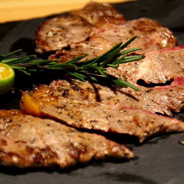 雪花牛肉据说选材是很讲究的,薄薄的一片,沾上酱汁,享受啊。
