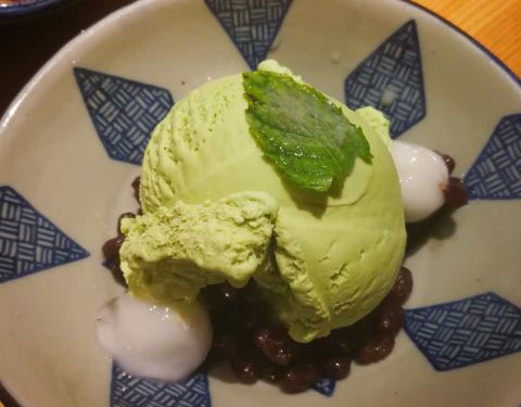 焦糖布丁卖相一般 但味道超赞的,布丁嫩嫩滑滑,一口气吃了3个。。抹茶冰淇淋配的小丸子还是红豆馅的哩。
