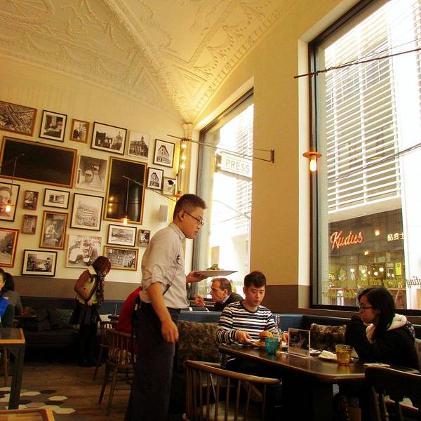 很有意思的餐厅,前身可是有上百年的报馆,年代感的装修风格,也让人趋之若鹜,位置挺多的,服务员也很忙碌,错过了饭市也可以去喝个下午茶,点心很精致,入口即化的蛋糕非常好吃,沙拉就只是新鲜,再点上一杯香浓的咖啡,简直太完美了。