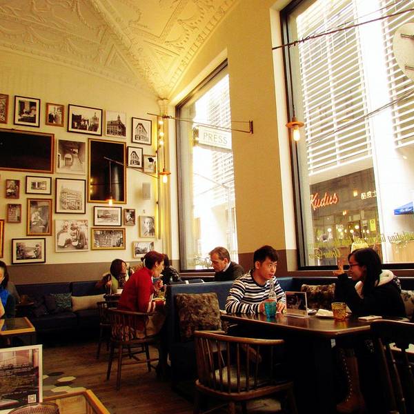 说到喝咖啡,想到了这个地方,就是原来申报的报馆,所有闹中取静的一个地方,穿过一条马路就到了人山人海的南京路! 实际上在国外很多咖啡店实际上就是也是一个小饭店,不光有咖啡也有点心和简餐,而在这里原味呈...说到喝咖啡,想到了这个地方,就是原来申报的报馆,所有闹中取静的一个地方,穿过一条马路就到了人山人海的南京路! 实际上在国外很多咖啡店实际上就是也是一个小饭店,不光有咖啡也有点心和简餐,而在这里原味呈现了这种在国外常见的咖啡馆,进门后会发现空间特别巨大,楼层挑高空间很大,所以即使上了夹层也不觉得压抑!装修布置也是希望呈现旧时咖啡馆感觉,二楼转角别有洞天,里面还有一个更为宽广的空间。 在这种环境下, 食物已经变得不重要了,享受这里的氛围,看着桌面上文字,或是两三知己聊天,或是一个人坐着发呆,都是不错的选择!