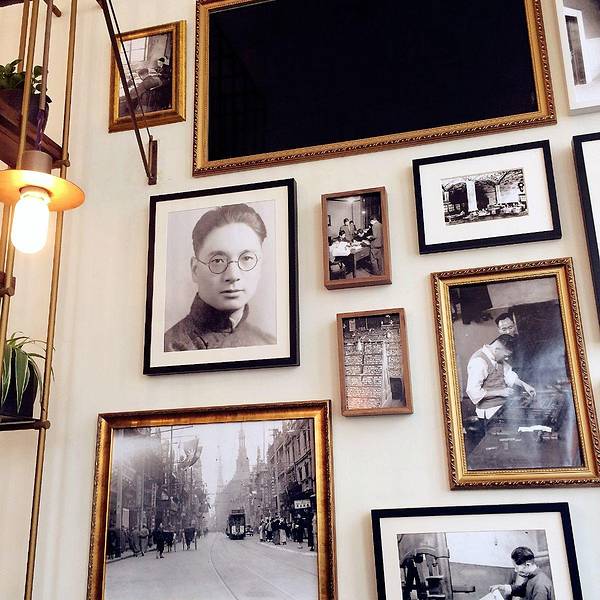 - 这里保留了许多当时的一些照片和文字,二楼的吧台和展示区非常漂亮