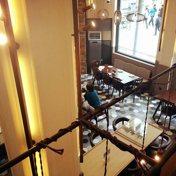 ...种在国外常见的咖啡馆,进门后会发现空间特别巨大,楼层挑高空间很大,所以即使上了夹层也不觉得压抑