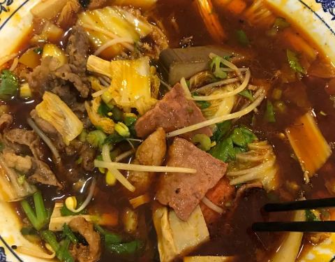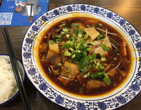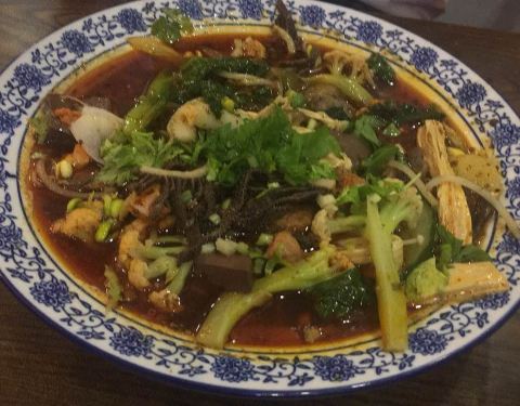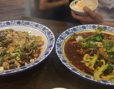 ...味鲜,我老公推荐过所以碰到了就来尝尝,可惜不能吃辣,不然会更好吃,环境不错,店面较小,人挺多的