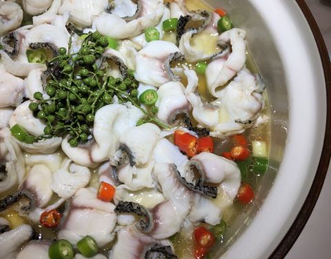 青花椒砂锅鱼在三钢里店入口的二楼,楼梯上去朝右走,坐在靠窗的位置可以看到三钢里一条街,这家店的服务真的很好,有什么需要的一回头服务员就会过来,鱼很嫩汤也很鲜。