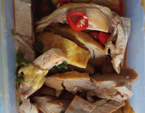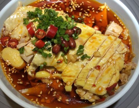 这家青花椒在三钢里的内侧二楼,靠近昌里路的入口。可能因为地段原因,每到周末节假日排队的人都很多。这次是为了一份免费的口水鸡而去,特意选了工作日下班早些过去,还是有两三桌在前面等候了。不过和店员说明了一下,倒是很能变通,说是打包的话,就不必排队了,也没要求额外消费,连盒子也可以用我自带的。等了几分钟就拿到了,其间店员的态度都很好。店内环境还可以,至少没觉得很吵,就是上二楼的铁楼梯大家走的时候小心些,露天的略滑。