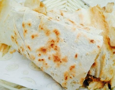 走到这家就进来了,之后才知道居然有63家分店,所以口味肯定不错。这种形式的点餐第一次看到,全部的蔬菜都是摆放在盘子里,整整齐齐摆在架子上,给你一个盘子,吃什么拿什么,反正摆满一小碗就行。随后上炉子现烤饼,一张普通饼5元,完全够一个姑娘吃的,不错。