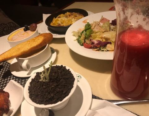 都觉得牛排有点咸,七分熟变成了十分熟,但是味道还是可以,勉强不介意了。但是甜点好吃,水果茶也是,服务员姐姐人特别好!好评是因为服务员姐姐!