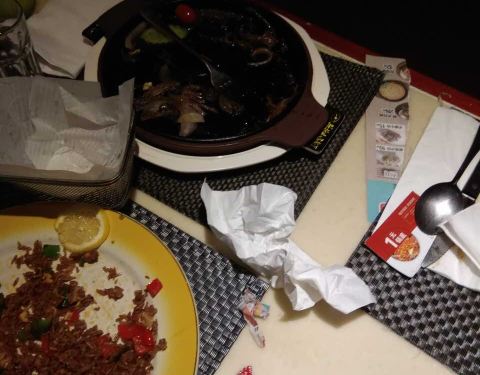 吃的口味还行,就是两个人坐的桌子属实是有点小,空间有点挤。