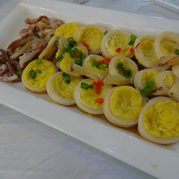 超级嫩,推荐必吃,趁热吃,表皮很酥,稍微有点咸 黑椒花蛤,很大,黑胡椒很特别 鱿鱼包咸蛋黄,鱿鱼很嫩