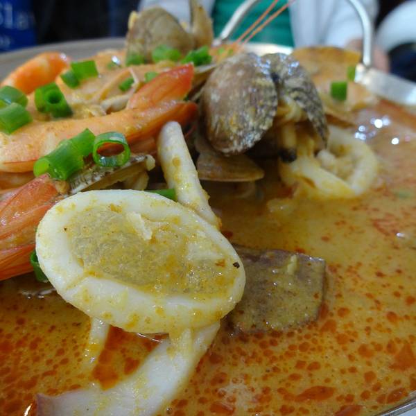 招牌有点low,排队人很多,海鲜现点现烧,点好不能加单,所以要考虑好吃什么,上菜很快,很新鲜 香煎丝鱼丁,超级嫩,推荐必吃,趁热吃,表皮很酥,稍微有点咸 黑椒花蛤,很大,黑胡椒很特别 鱿鱼包咸蛋黄,鱿鱼...