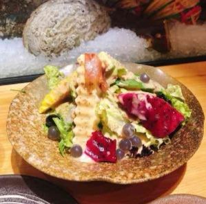 综合生鱼片套餐:有前菜挺不错的。色拉很新鲜,玉米清爽蔬菜爽口。综合生鱼片,一盆意外的量很大,三文鱼切的是好厚实好厚实,吃过很多日料这家店的刺身绝对属于很厚实的。很新鲜,软糯,口感很好,另外几种鱼片也很赞,关键是都很新鲜用的鱼片,口感上很不错。套餐还配米饭和汤,饭后还有甜点可选,选了奶酪,奶味很足,一个套餐性价比真的很高。