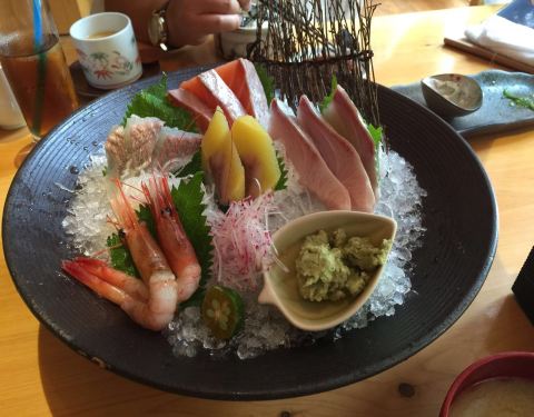 综合生鱼片套餐:有前菜挺不错的。色拉很新鲜,玉米清爽蔬菜爽口。综合生鱼片,一盆意外的量很大,三文鱼切的是好厚实好厚实,吃过很多日料这家店的刺身绝对属于很厚实的。很新鲜,软糯,口感很好,另外几种鱼片...综合生鱼片套餐:有前菜挺不错的。色拉很新鲜,玉米清爽蔬菜爽口。综合生鱼片,一盆意外的量很大,三文鱼切的是好厚实好厚实,吃过很多日料这家店的刺身绝对属于很厚实的。很新鲜,软糯,口感很好,另外几种鱼片也很赞,关键是都很新鲜用的鱼片,口感上很不错。套餐还配米饭和汤,饭后还有甜点可选,选了奶酪,奶味很足,一个套餐性价比真的很高。