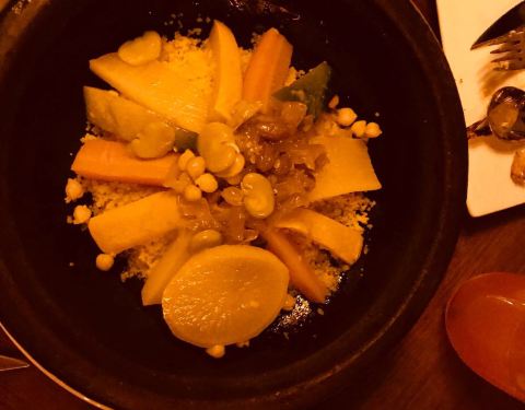 带女朋友来魔都逛逛,吃腻了日韩泰各种料理,对西餐也没多大感觉,一个久居上海的阿拉伯朋友推荐的摩洛哥餐厅,十分有特色的菜系,第一次尝试就被惊艳到了,女票最喜欢摩洛哥传统烤鸡肉,可能是烧烤配方比较特别,她吃的完全停不下来,吃完又点了一份。我个人比较钟情蔬菜小米,由于最近消化不好才点了这个,除了口感很赞之外,吃完后肠胃也很舒服。餐厅的风格也是别具一格!强烈推荐!
