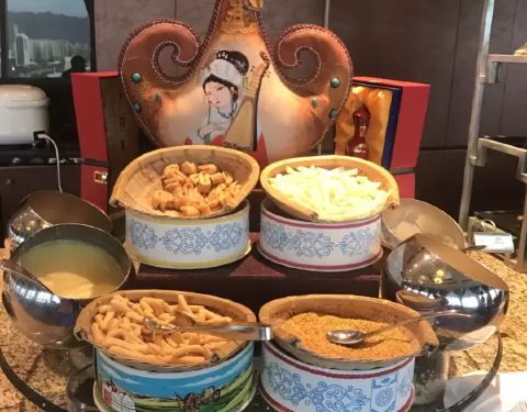 今天也是睡到自然醒,假期想着就不要太累,睡到自然醒,到酒店的旋转餐厅吃早餐,酒店的早餐非常丰盛,风景也是非常好,吃了一些特色早餐准备启程出发大昭寺。