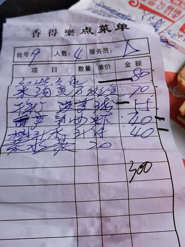 去香得乐是为了吃潮州特色菜。这个网的点评不是挺好吗?去了很有被坑的感觉。一层楼乌灯黑火,上了二层只有服务员坐着,不得不问是不是还没开门(当时7pm), 上了三层一个单间,台布满是烟灰洞s。服务员进来说"帮你点菜,不会浪费的。"写完后,我说"我看不懂你的字"又问了为什么写价格。她说最低收费是60元一个人。她说那些是潮州名菜…… 我改了两个。 十分钟后就开始上菜了(微温的)((上菜速度极快。)来了中国十一天,去了中山,岜沙,北海,涠洲岛,潮卅,这香得乐是最难吃的东西。千万不要去