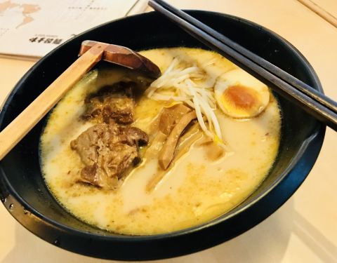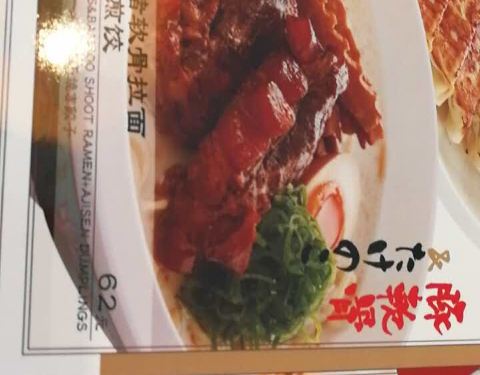 点了半天,还是选择招牌,毕竟是靠这起家的。感觉就普通的面食,味道可以接受,有半颗糖心蛋吧,只是煮过了,有两片肉,有几条木耳条,还有绿豆芽。