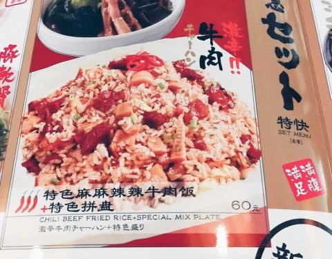 第一次来,点了麻辣牛肉炒饭,麻辣鸡翅,柠檬水(服务员说pad点不上,我放弃了)饭不错,整体感觉还行