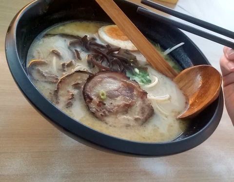 首先二层空调不足,灯光昏暗。 翻开菜单,这里的价格比外面的味千贵了至少少10[%],一向很鄙视这种定价机制…… 二维码扫描下单,显示说注册会员有优惠,然而注册了之后并没有。 上餐速度算比较快,口味却不如家附近的味千,
