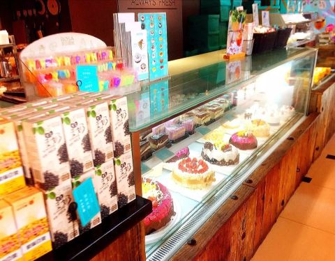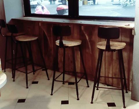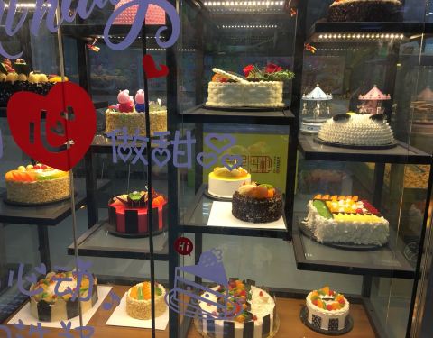- 这家店环境还是不错的,然后吃的东西还是一般,主要装修挺好,可以看到里面做蛋糕,然后这有三个凳子...