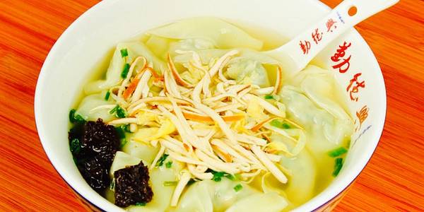 - ...汁,咬一口吸一吸,味道鲜美可口,馄饨汤里放了一小撮虾皮,馄饨皮薄陷多,肉质紧实,咸淡适中,超赞