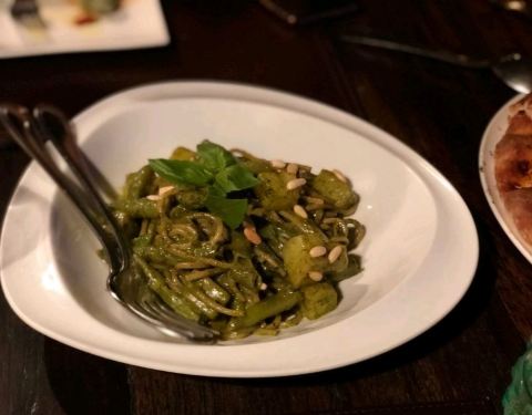 餐厅分有室内室外区域,周边的环境挺安静的,很适合朋友聚会的,意大利的风格为主,可以选择套餐,也可以点上一些比较有特色的食物,推荐那里的海鲜烩饭,简直不要太好吃,而且料很多,不会像应付式的那种,不过面条有点硬,不过肉很多,甜品很漂亮,都不忍心破坏,pizza分量很足,吃不完还打包回去呢。