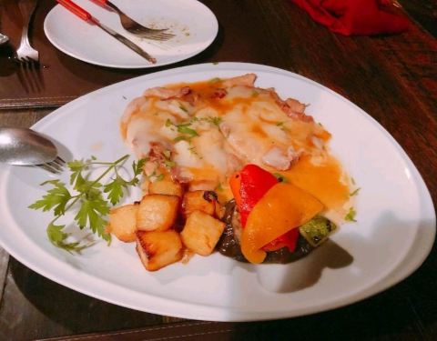 这一家是意大利餐厅,但是感觉气氛还不错,有一点像美式餐厅那种很快乐的感觉,里面吃的东西有意大利经典的那种香肠,还有一些烤的东西,还可以。