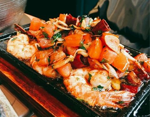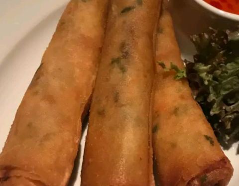 - 有个像春卷一样的东东里面是整只的大虾,一次三只吃下去我满足了,小伙伴要气的吐血了我没给他留