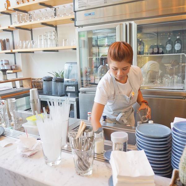 在这里尽量低声轻语,大家都比较安静的在享受自己惬意的早晨,可不能因为你的喧闹而打扰到了人家的兴致。我们也是左顾右盼看着舒适的环境自然的安静下来了。要说这家餐厅点什么,看不懂英文可以看配图,看配图再不知道如何选择的话,可以选择菜单上有小火箭标志的菜品,说明那些是餐厅推荐的必点系列。